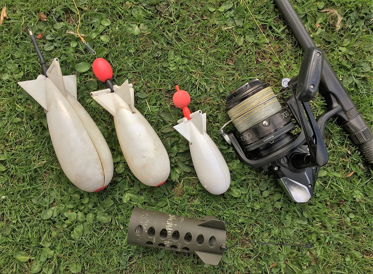 I need to bait up using groundbait, particularly useful for bream fishing I use a converted spod that is essentially a huge open-ended feeder. I usually