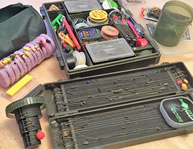In the dark cold evenings when you've eaten to much and watched to much TV that is the time to sit down and tie up some new rigs. Whatever your favourite style of fishing you can always tie up some fresh rigs whether it be pole rigs, carp or feeder rigs or just hooklinks. Indoors is always a good place as the light is better, its warmer and all your knots etc will be so much better, These can be stored on many different types of rigs bins, boxes or winders.