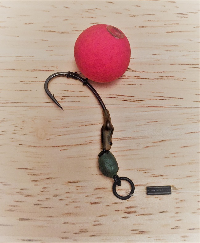 One of me home tied 'Ronnies' crimped to a 30lb flouro boom and a pop-up balanced with putty
