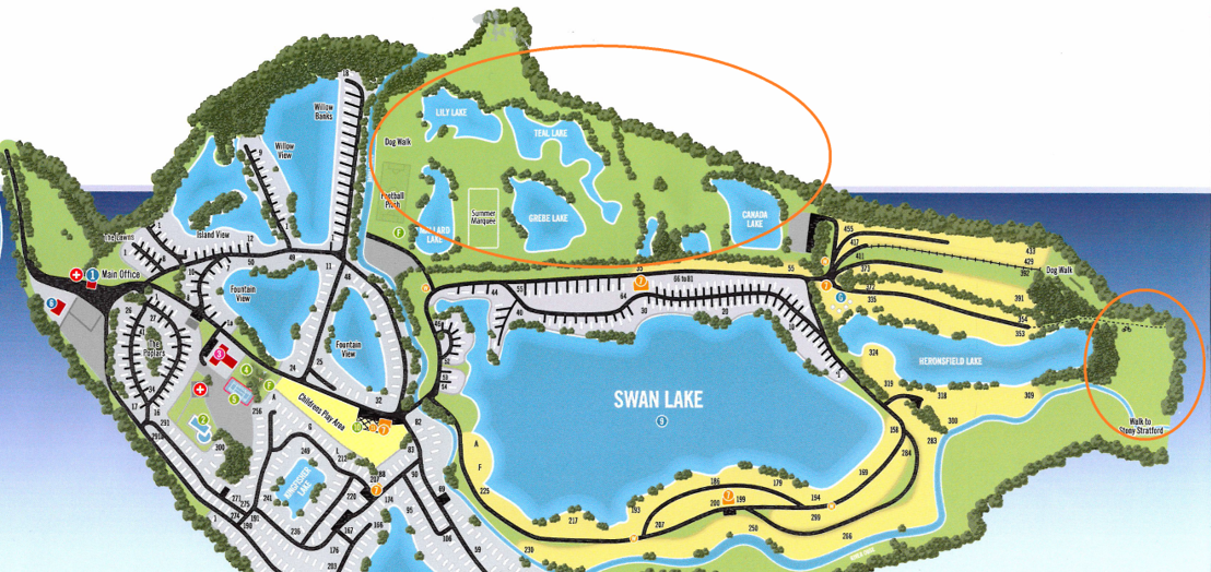 The good news of course, is that Cosgrove Park is a fantastic place to holiday with your pooches. Set in 180 acres of beautiful countryside with several areas where your dogs can be let off their leads. Take a look at our map below for our designated dog walking areas.