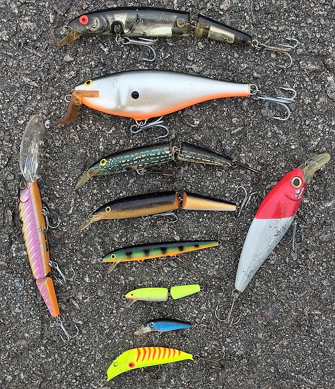 A selection of my plugs mostly used for pike fishing - note the large diving vanes on the deep divers