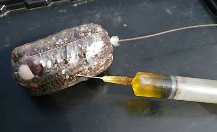 The finished bag is now rock hard and ready to cast. For an extra edge I inject the bag with hemp oil or a squirt of Korda Goo